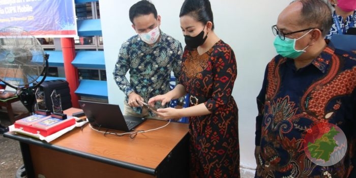 Bupati Landak Karolin Margret Natasa saat launching pembayaran PDAM via CUPK mobile