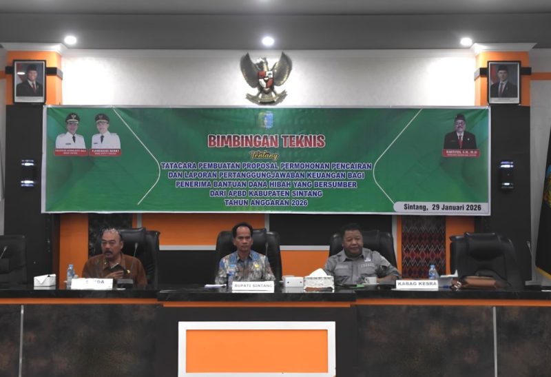 Pertemuan tersebut terjadi saat Bupati Sintang membuka Bimbingan Teknis Tata Cara Pembuatan Proposal Permohonan Pencairan Dan Laporan Pertanggungjawaban Keuangan Bantuan Dana Hibah Apbd Kabupaten Sintang Tahun Anggaran 2026 yang diselenggarakan oleh Bagian Kesejahteraan Rakyat Sekretariat Daerah Kabupaten Sintang.