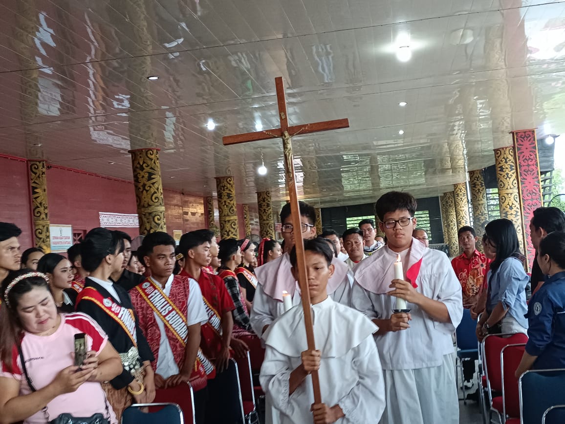 SINTANG, KN – Vikaris Jendral Keuskupan Sintang Pastor Leonardus Miau, Pr didampingi 6 orang Pastor lainnya memimpin Misa Syukur Pembukaan Pekan Gawai Dayak Ke…