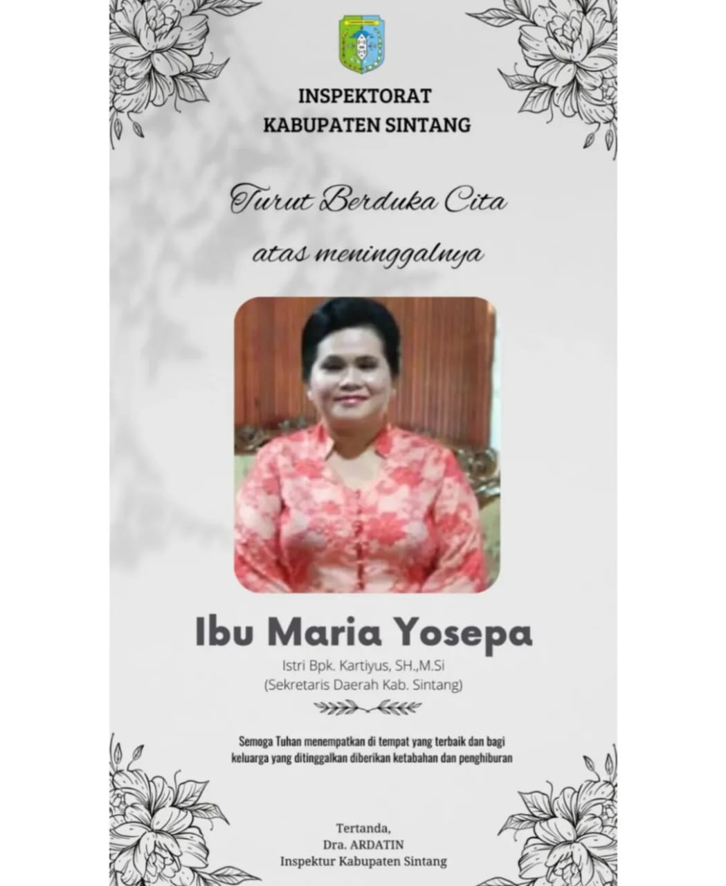 SINTANG, KN – Seluruh jajaran Inspektorat Kabupaten Sintang menyampaikan turut berduka cita yang mendalam atas meninggalnya Ibu Maria Yosepa, istri tercinta Bapak Kartiyus, SH.,…