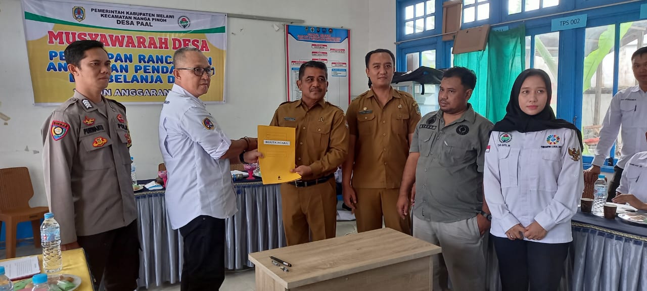 MELAWI-KN. Pemerintah Desa Paal Kecamatan Nanga Pinoh Kabupaten Melawi melaksanakan Musyawarah Desa penetapan Rencana Kerja Pemerintah Desa (RKPDes) Paal Tahun Anggaran 2025, Selasa (3/12/2024) di Balai Pertemuan Desa Paal. Kegiatan yang dipimpin Ketua BPD, Untung Supriyatna tersebut, dihadiri pihak Kecamatan Nanga Pinoh, Bhabinkamtibmas, Pendamping Desa, Anggota BPD Desa Paal, Kepala Desa, Para Kadus, PKK, Para Ketua RT, Tokoh Agama, Tokoh Masyarakat, dan Tokoh Adat.