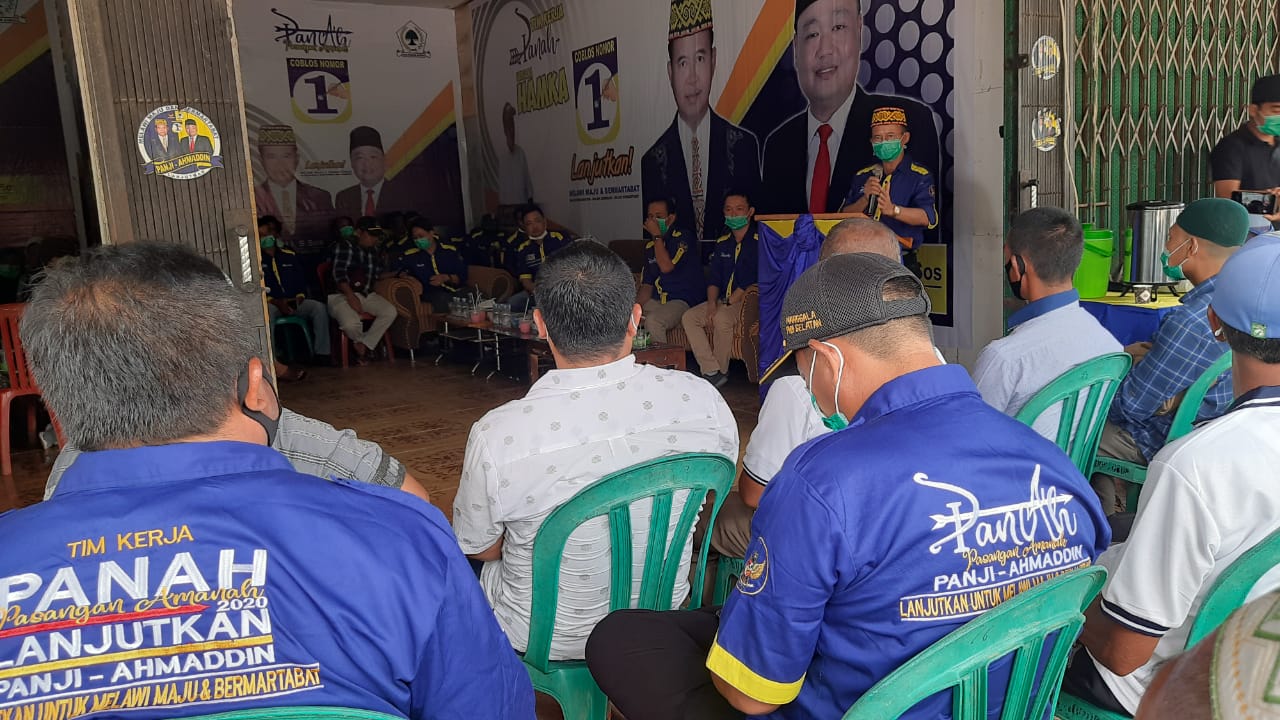 Melawi, KN – Pasangan calon Bupati dan Wakil Bupati Melawi, Panji – Abang Ahmaddin (PANAH) melaunching Posko panah bersama HAMKA Kecamatan Pinoh Selatan, Rabu siang (14/10/2020). Kegiatan yang dilaksanakan secara protokol kesehatan. Dimana kegiatan itu sekaligus sosialisasi pasangan calon yang dihadiri para warga Pinoh Selatan.