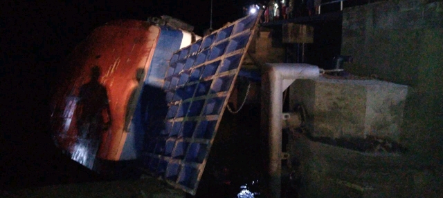 Tenggelamnya kapal Ferry tersebut saat sedang bersandar di dermaga Sunyat.