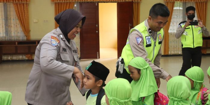 MELAWI, KN – Untuk mengenal lebih dekat tugas Polisi kepada anak-anak, Pesantren Raudhatul Athfal Bustanul Qur’an membawa para santri dan santriwatinya berkunjung ke Polres Melawi. Kamis (3/11/2022). Kunjungan tersebut tertuju ke Satuan lalu Lintas (Sat Lantas) dan Satuan Pembinaan Masyarakat (Sat Binmas). Kunjungan disambut langsung Personil Satlantas Aipda Yoyo dan Personil Sat Binmas Bripka Disusilowati di Polres Melawi.