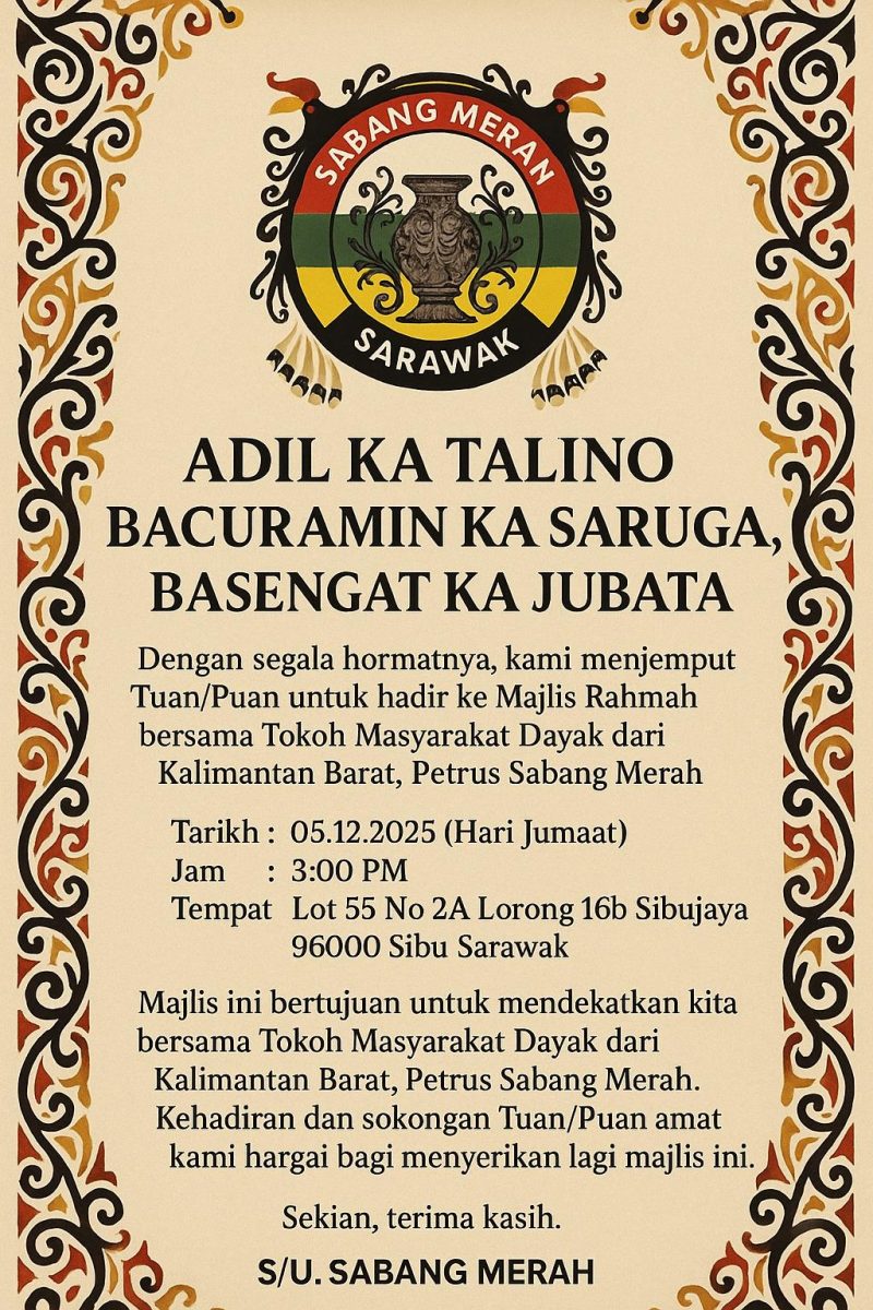 SINTANG, KN – Ketua Umum Sabang Merah Borneo (SMB), Petrus, dipastikan akan memimpin rombongan pengurus pusat untuk menghadiri undangan resmi dari pengurus SMB Cabang Sibu, Serawak, Malaysia dalam kegiatan Majilis Rahmah. Acara tersebut dijadwalkan menjadi momentum penting bagi penguatan hubungan persahabatan lintas negara antara Indonesia dan Malaysia, khususnya melalui organisasi masyarakat Sabang Merah Borneo yang telah berkembang di kedua wilayah tersebut.