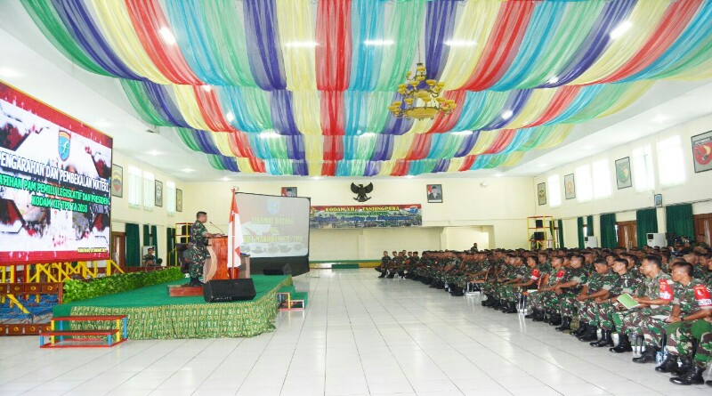 KUBU RAYA – Komando Daerah Militer XII Tanjungpura menggelar kegiatan Pengarahan dan Pembekalan Materi Latihan Pengamanan Pemilu Legislatif dan Presiden Tahun 2019 kepada prajurit di Aula Makodam XII Tanjungpura, Jalan Arteri Alianyang, Sungai Raya, Kubu Raya, Selasa (28/1/19).