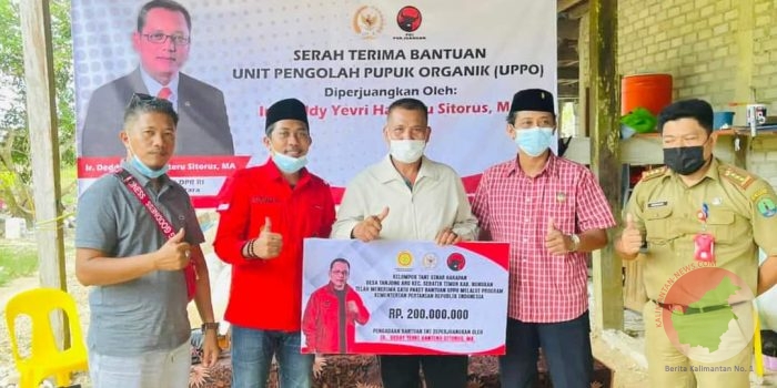 NUNUKAN – Anggota DPR RI Komisi VI Fraksi PDI Perjuangan Dapil Kalimantan Utara, Deddy Sitorus menyerahkan bantuan pupuk dan unit pengelolaan pupuk organik (UPPO) kepada dua kelompok tani di Kabupaten Nunukan. Senin, (13/12/2021).