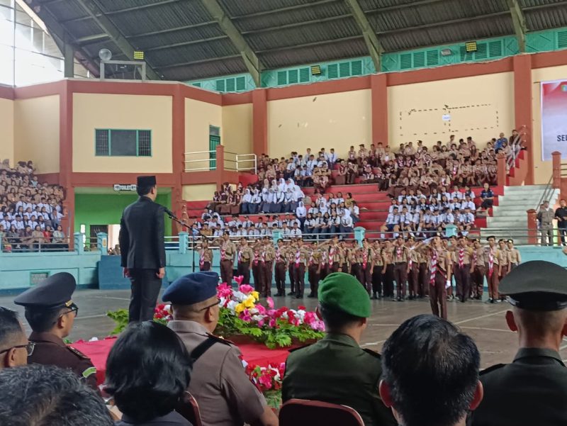 SINTANG, KN – Pemerintah Kabupaten Sintang melalui Dinas Pemuda, Olahraga dan Pariwisata Kabupaten Sintang melaksanakan upacara untuk memperingati Hari Sumpah Pemuda yang ke 97 Tahun 2025 di Gedung Olah Raga Apang Semangai pada Selasa, 28 Oktober 2025 pagi.