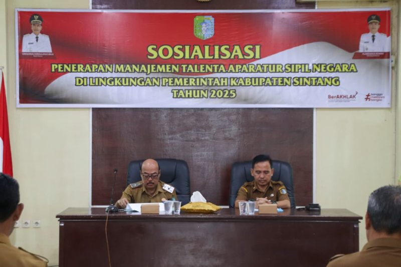 SINTANG, KN – Pemerintah Kabupaten Sintang melalui Badan Kepegawaian dan Pengembangan Sumber Daya Manusia (BKPSDM) Kabupaten Sintang menggelar sosialisasi penerapan manajemen talenta Aparatur Sipil Negara di Aula BKPSDM pada Senin, 20 Oktober 2025.