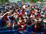 Para pelajar antusias menggunakan masker yang dibagikan PMI dan LKKS Melawi secara gratis—Dedi Irawan