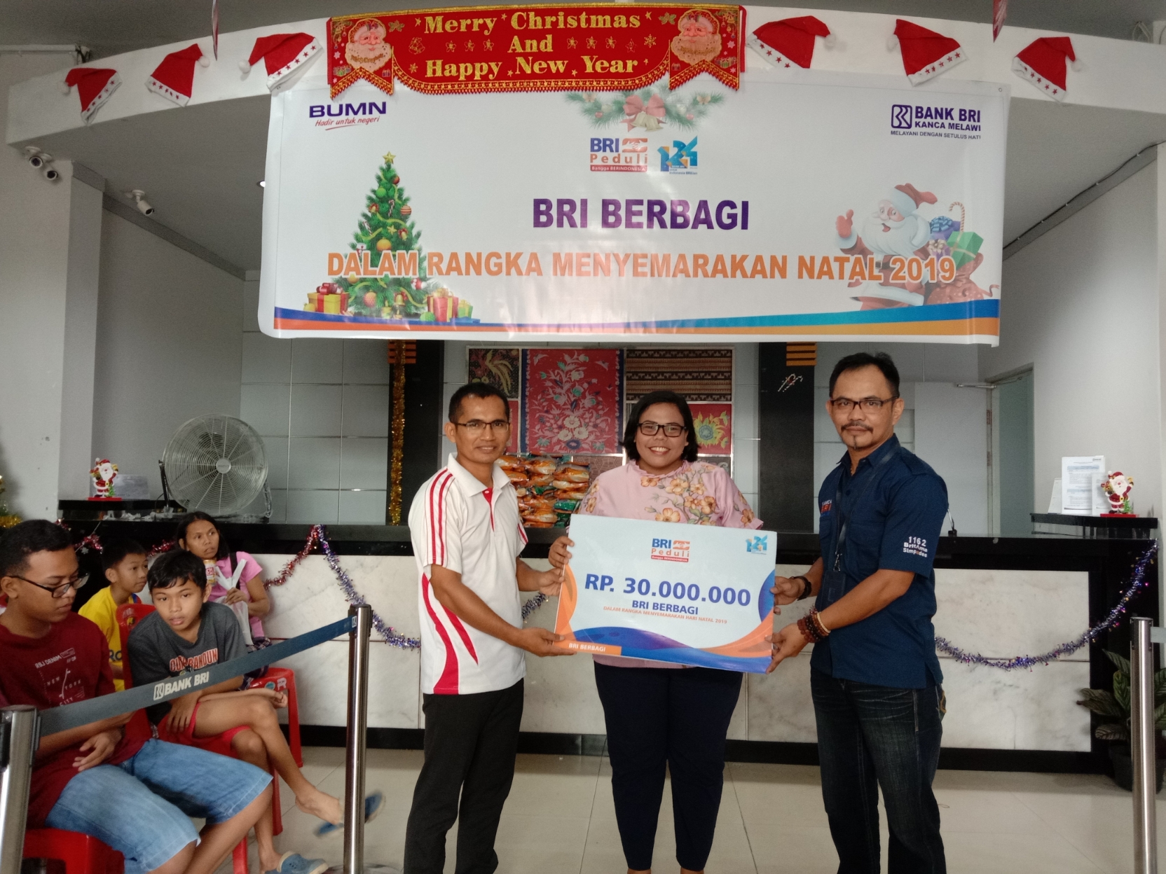 “Jadi ini diberikan kepada masyarakat di sekitar lingkungan BRI yang dianggap kurang mampu. Ini program nasional dari Bina Lingkungan BRI. Jadi Kanwil menunjuk beberapa cabang untuk melaksanakan program bina lingkungan dalam rangka menyemarakkan natal tahun ini. Insya Allah kegiatan ini akan dilaksanakan setiap tahun. Insya Allah dengan kepedulian BRI maka masyarakat merasa tertanam jiwanya,” paparnya.