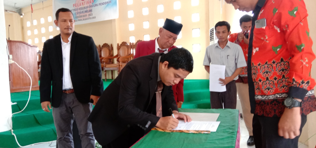 MELAWI,KN-Sekolah Tinggi Keguruan dan Ilmu Pendidikan (STKIP) Melawi, melakukan pelantikan Ketua STKIP Melawi periode 2019-2023 sekaligus serah terima jabatan, dari Ketua STKIP lama, Sukardi kepada Ketua STKIP terpilih, Septian Piterianus, Kamis (8/8) di aula Auditorium STKIP Melawi. Selain dihadiri para dosen, juga dihadiri sekretaris Dinas Pendidikan dan Kebudayaan (Disdikbud) dan sejumlah pemerhati pendidikan.