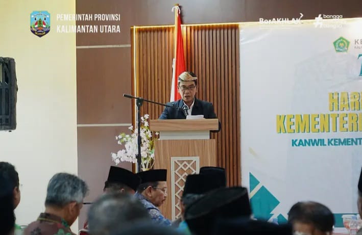 Mewakili Gubernur Kaltara, Staf Ahli Robby menyampaikan ucapan selamat kepada seluruh jajaran Kemenag, khususnya di Provinsi Kaltara atas dedikasinya, pengabdian dan kerja keras yang telah ditunjukkan selama delapan dekade mengabdi untuk bangsa dan negara. (dkisp)