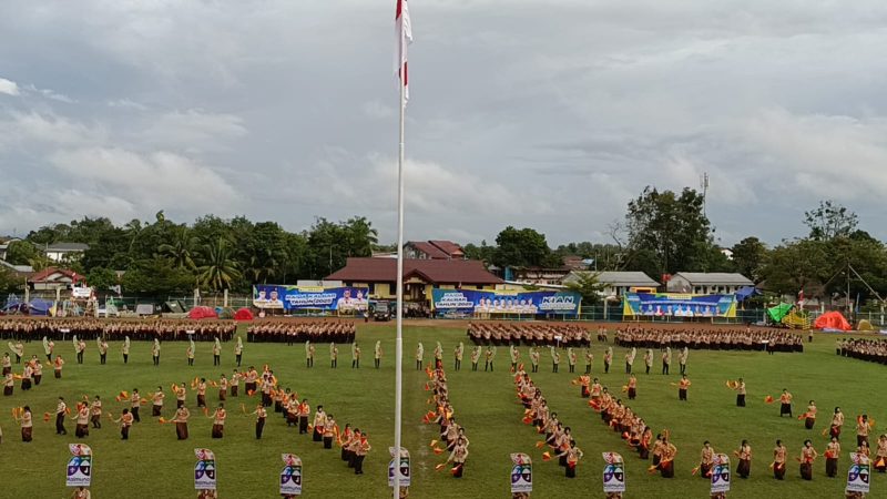 SINTANG, KN – Pembukaan Raimuna Daerah (Raida) se-Kalimantan Barat di Stadion Baning Sintang pada Selasa sore, 25 November 2025, berlangsung megah dengan penampilan tarian kolosal bertajuk “Saka Tiga” yang dipersembahkan Kwartir Cabang (Kwarcab) Gerakan Pramuka Kabupaten Sintang. Ratusan penari tampil memukau dan berhasil menghipnotis ribuan peserta dan tamu undangan yang memadati stadion.