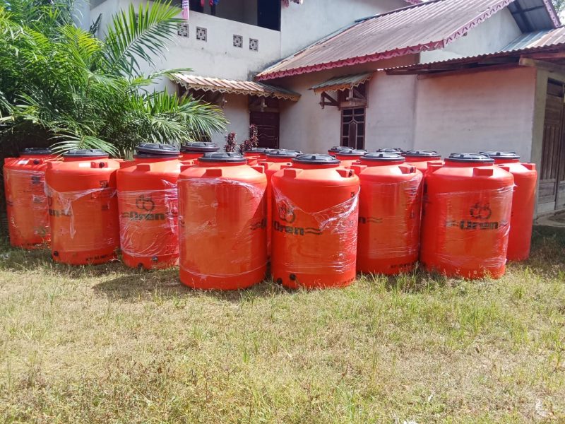 “Kami sangat berterima kasih. Bantuan ini memang kami butuhkan. Air hujan adalah andalan kami, jadi tong air sangat membantu keluarga,” ungkap salah satu warga.